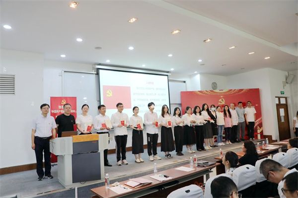 最后,学院各教工党支部书记向2022-2023学年新发展党员赠送《共产党宣言》《中国共产党章程》。