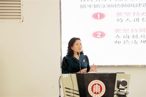 李恺传达教育部开展师德师风建设工作推进暨师德集中学习教育启动部署会会议精神,带领教职工重温高校教师“职业行为十项准则”“禁行行为红七条”。李恺强调,新时代对广大教师落实立德树人根本任务提出新的更高要求,要进一步增强教师的责任感、使命感、荣誉感,规范职业行为,明确师德底线。广大教师要努力成为有理想信念、有道德情操、有扎实学识、有仁爱之心的好老师。