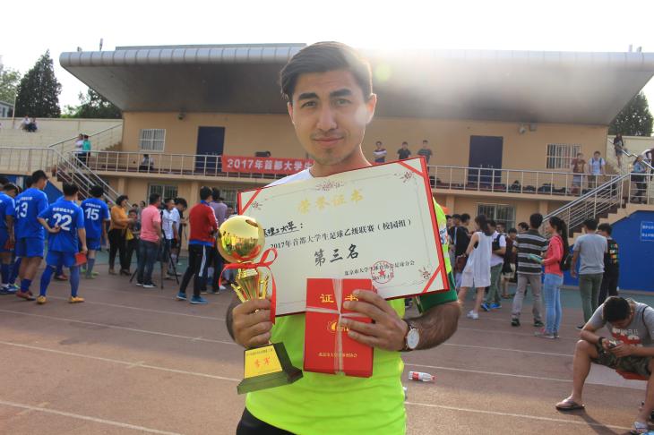 随着主裁判的一声哨响,必赢普通生校队最终凭借米尔扎提和木沙的两粒进球,2:0战胜北京科技大学,获得了2017首都高校大学生足球联赛(乙级)第三名,为此次征程画上圆满句号。虽然半决赛点球负于北邮未能闯入决赛,但第三名的成绩也创造了必赢普通生校队在大乙赛场上的最佳战绩。