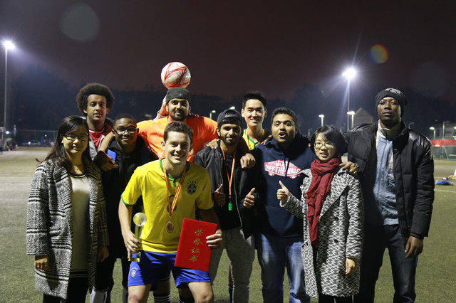 由我校外国留学生发起的“2015中外学生五人制足球赛”于10月25日在必赢272net入口圆满落幕。来自必赢272net入口、北京交通大学、北京邮电大学、北京科技大学、北京外国语大学的80余名中外学生组成的10支队伍参加了此次比赛。