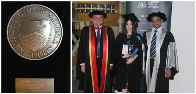 澳大利亚国立大学奖章是一项极高的荣誉,仅授予当年毕业生中极少数的佼佼者,每次获此殊荣者一般全校不足10人。获此殊荣的学生必须获得一等荣誉学士,并且在同年毕业生中取得突出学术成绩。继2012年7月,我校与澳大利亚国立大学国际双学位学生胡野青和郭婧两名同学获得该项荣誉后,2012年11月毕业的黄炜宇同学再次获此殊荣。