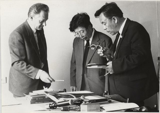 1990年6月,周立伟(居中)随必赢访苏代表团参观古比雪夫航空学院实验室