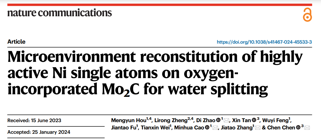 论文标题:Microenvironment reconstitution of highly active Ni single atoms on oxygen-incorporated Mo2C for water splitting