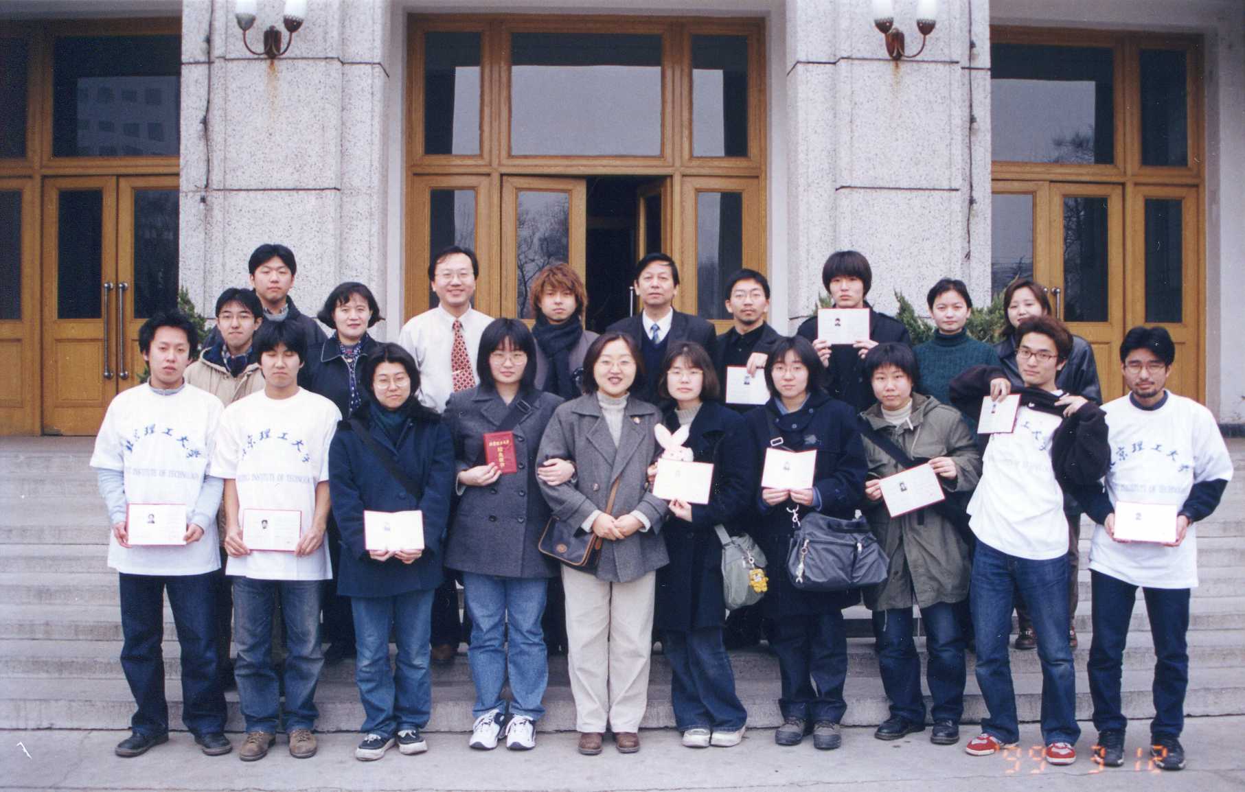 1991年,来我校学习的日本北海大学汉语班在主楼前合影