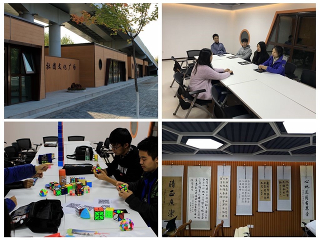 为了支持学生社团健康蓬勃发展,学校划拨专项文化建设经费,由良乡校区管理处牵头建设学生社团文化广场。广场集学生社团工作研讨、活动组织、成果展示等功能于一体,并于2018年9月投入使用,通过共享办公为学生社团提供更舒适的工作环境和更充足的活动场所。